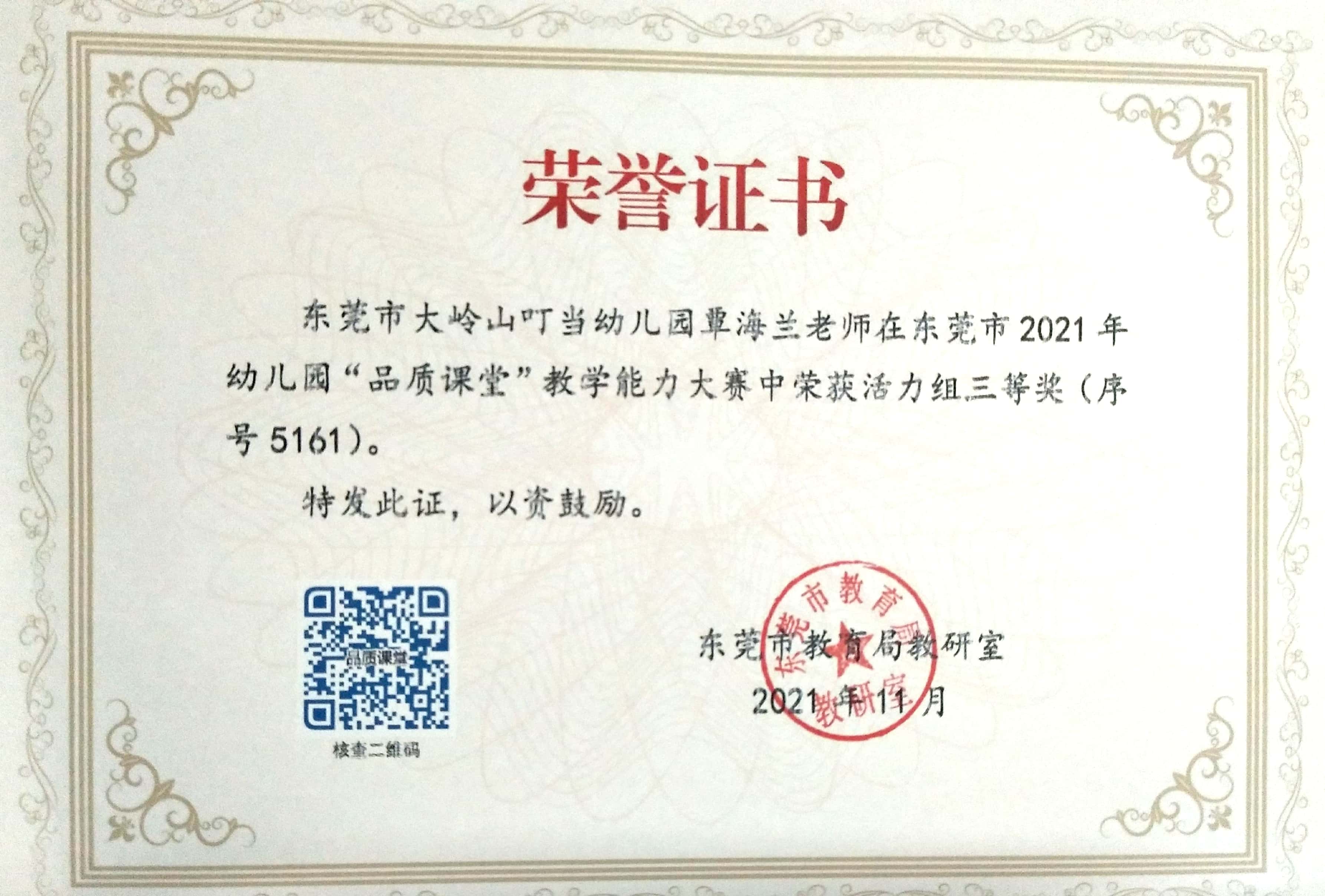 “品质课堂”三等奖